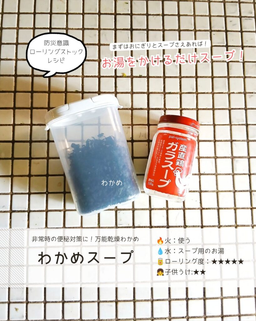 日常でもよく使うわかめとスープのもとがあればわかめスープはできちゃいますね✨