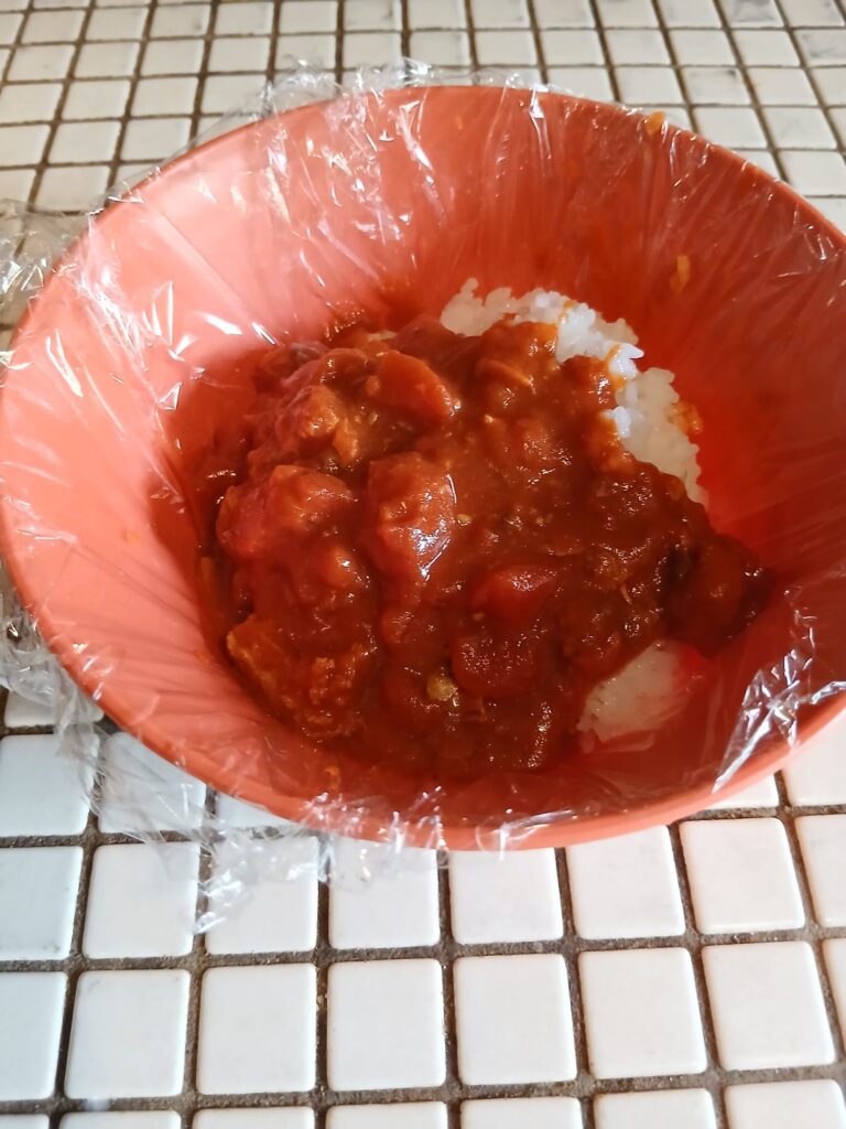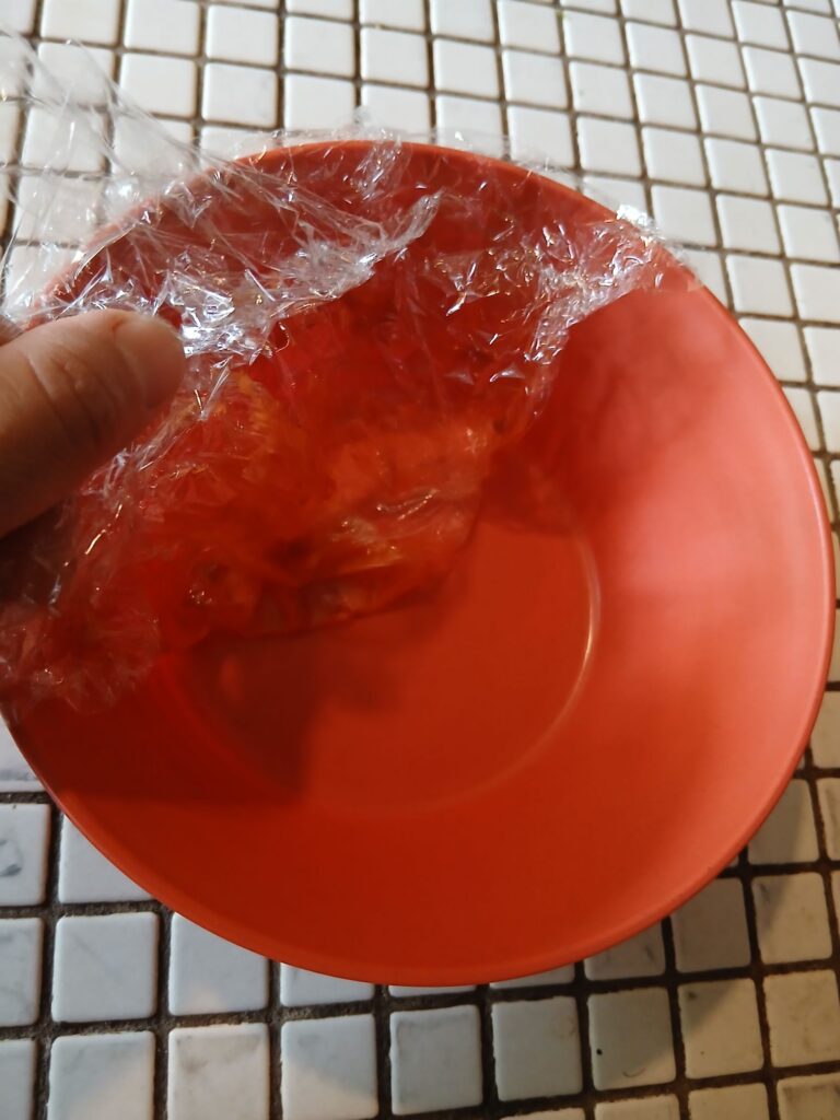 お皿にもラップをして、盛り付け!完成!